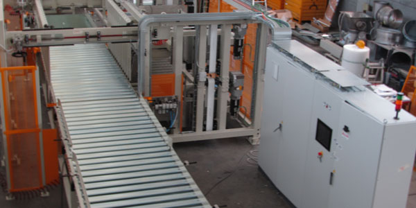 码垛机安装在冷端末段,在切割单元之后,用于叠加玻璃棉板,为最后的包装做准备。